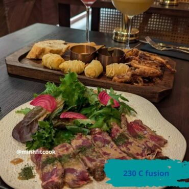 Les plats et Tarifs : -Mi-cuit de bœuf façon tataki épices Périlla rouge salée et sésame (9.00€) -Planche à partager : tempura d’encornets, crevettes croustillantes. …
